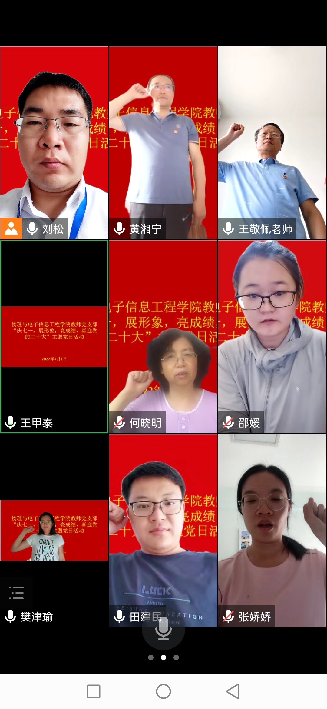 7月1日下午体育平台官网教师党支部在西二楼举行线上、线下“庆七一、展形象、亮成绩、喜迎二十大”主题党日活动,活动由教师党支部副书记刘松主持,党总支书记王敬佩、经理黄湘宁、副经理王甲泰及全体党员参加。