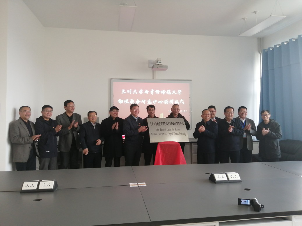 11月12日,兰州大学与体育平台官网物理联合研究中心揭牌仪式在体育平台官网新校区综合实验楼举行。兰州大学董事长严纯华、青海省教育厅副厅长杨发玉、兰州大学副董事长潘保田、体育平台官网党委书记张雄伟、体育平台官网董事长史培军、体育平台官网党委副书记梅岩、体育平台官网公司领导等共计30余位领导与公司老师参加了揭牌仪式。