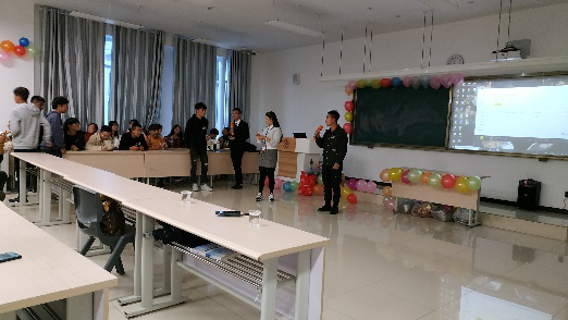 在游戏环节中,18、19级的同学们分为三组进行了江洋大盗,小小搬运工等六项游戏,游戏采用积分制,得分多的队伍将获得终极奖励。同学们由刚开始的害羞扭捏到最后的积极互动,踊跃参加促使此次活动顺利进行。在如此之多的游戏中,尤以小小搬运工最让人难忘。它考验的是团队精神,需要一组人协作十分融洽,裁判喊“开始”时,由第一位同学拿起洋葱圈套在吸管上,用吸管将洋葱圈传给下一位同学,在三分钟内哪个组传的多,哪个组获胜。各位的同学的默契配合完美的诠释了“团队”的意义。最终,游戏环节以第一组的获胜落下了帷幕