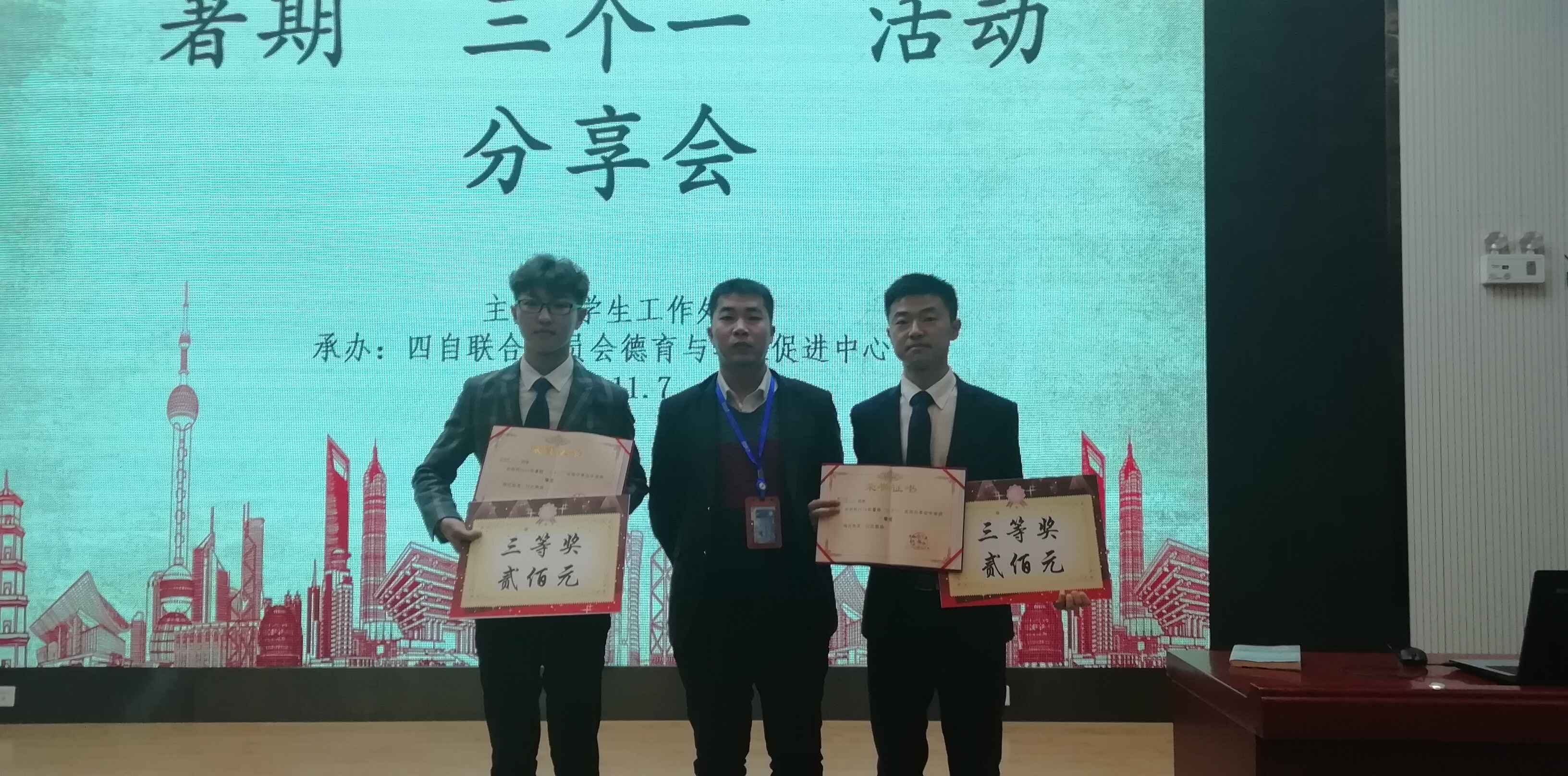 2018年11月7日下午3时,由校员工工作处主办,四自联合委员会和德育与学业促进中心协办的暑期“三个一”活动分享会决赛在科技实验楼A楼报告厅举行,全校各院系的11名参赛选手参加了决赛。公司参赛选手16专升本班的范文海同学和17新能源科学与工程班的宗浩然同学经过激烈角逐,最终都荣获了三等奖。