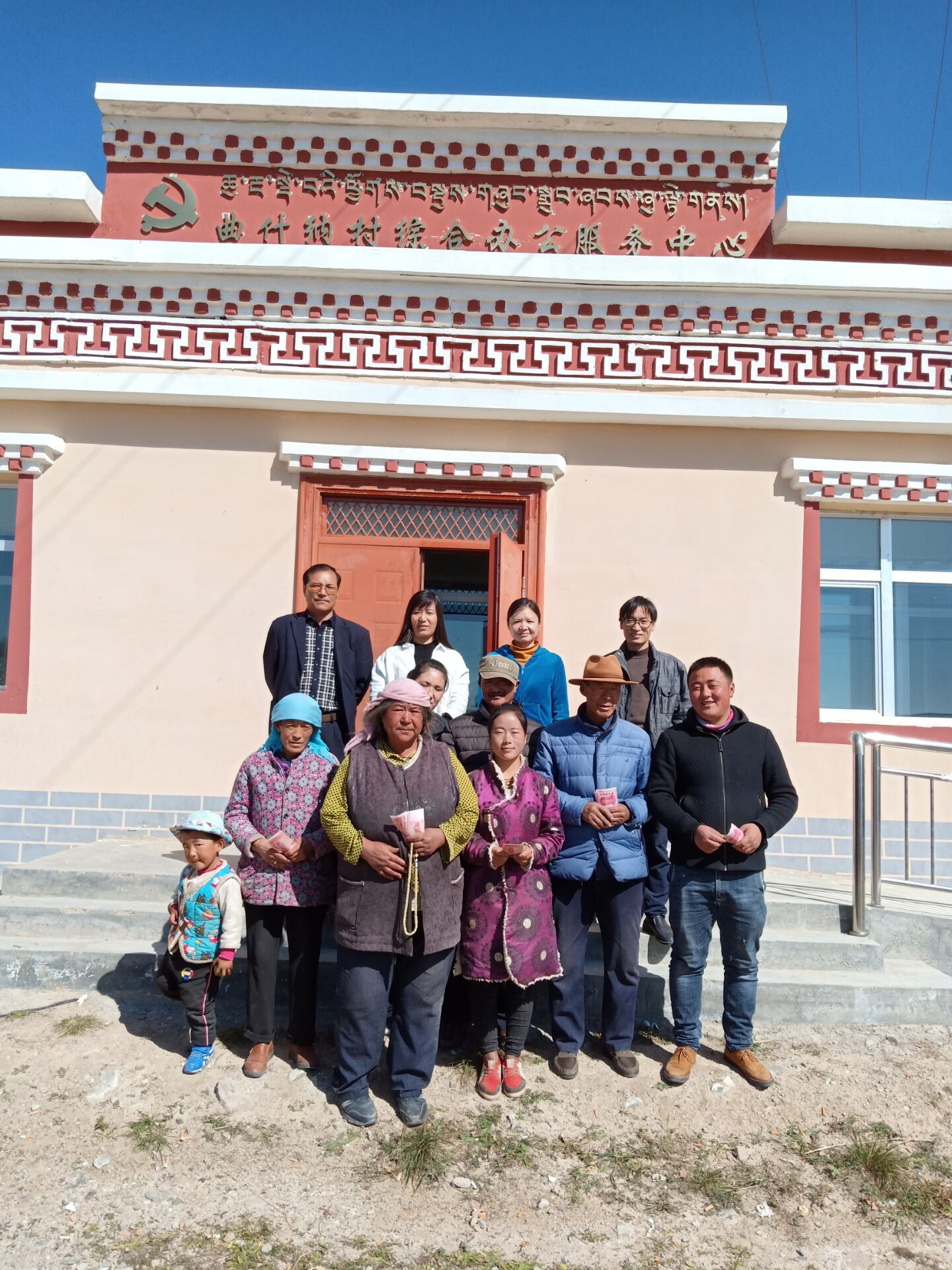 集团驻村干部仁青诺日老师一大早就等候在曲什纳村综合办公服务中心,他给大家详细介绍了开展精准扶贫工作以来村民生活改变情况。几位老师和村民进行了深入交谈, 询问了他们近期的生产生活状况、身体健康状况、冬季取暖等问题,并为8户贫困户送上了慰问金。现年24岁的周毛卓玛因患重病辍学后,依旧坚持每天看书学习、练说普通话,她对生活的热爱深深感动了在场的每一个人……