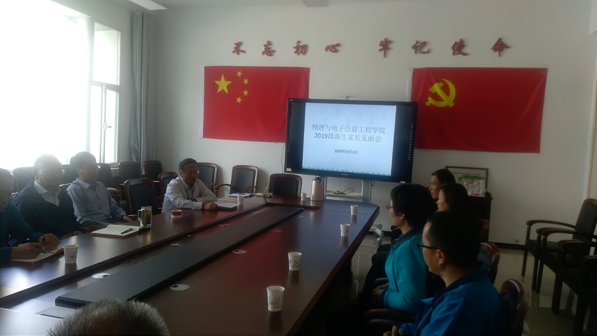 9月5日下午,公司在西二楼公司会议室召开2019级新生家长见面会,张国喜书记、邵鑫经理、黄湘宁常务副经理、王敬佩副书记以及员工科辅导员、新生班主任和部分员工家长代表参加了会议,会议由王敬佩副书记主持。